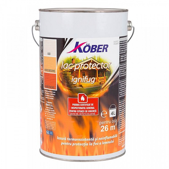Lazura termorezistenta si neinflamabila pentru protectia la foc a lemnului. Protejeaza si coloreaza lemnul exploatat la interior si exterior. Asigura protectie la actiunea focului, protectie impotriva cariilor, rezistenta la UV, la intemperii, fungii, albastreala, mucegai si insecte.